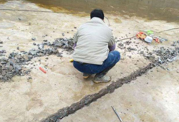 与此同时,在裂痕处剔出V型沟槽,沟槽的剔出速度要坚持快速,此举目的是为了避免四周的混凝土松动,之后要坚持沟槽的洁净,用工具将沟槽内的杂物去除,继而对其停止潮湿处置。